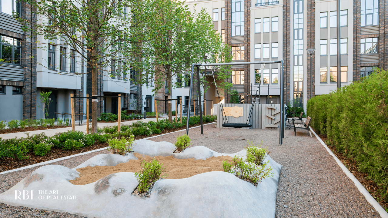 Все пространство двора утопает в зелени. Кустарники и деревья подобраны таким образом, чтобы радовать жителей листвой круглый год. Продуманное зонирование позволит каждому, независимо от возраста и увлечений, провести время на свежем воздухе в своё удовольствие.