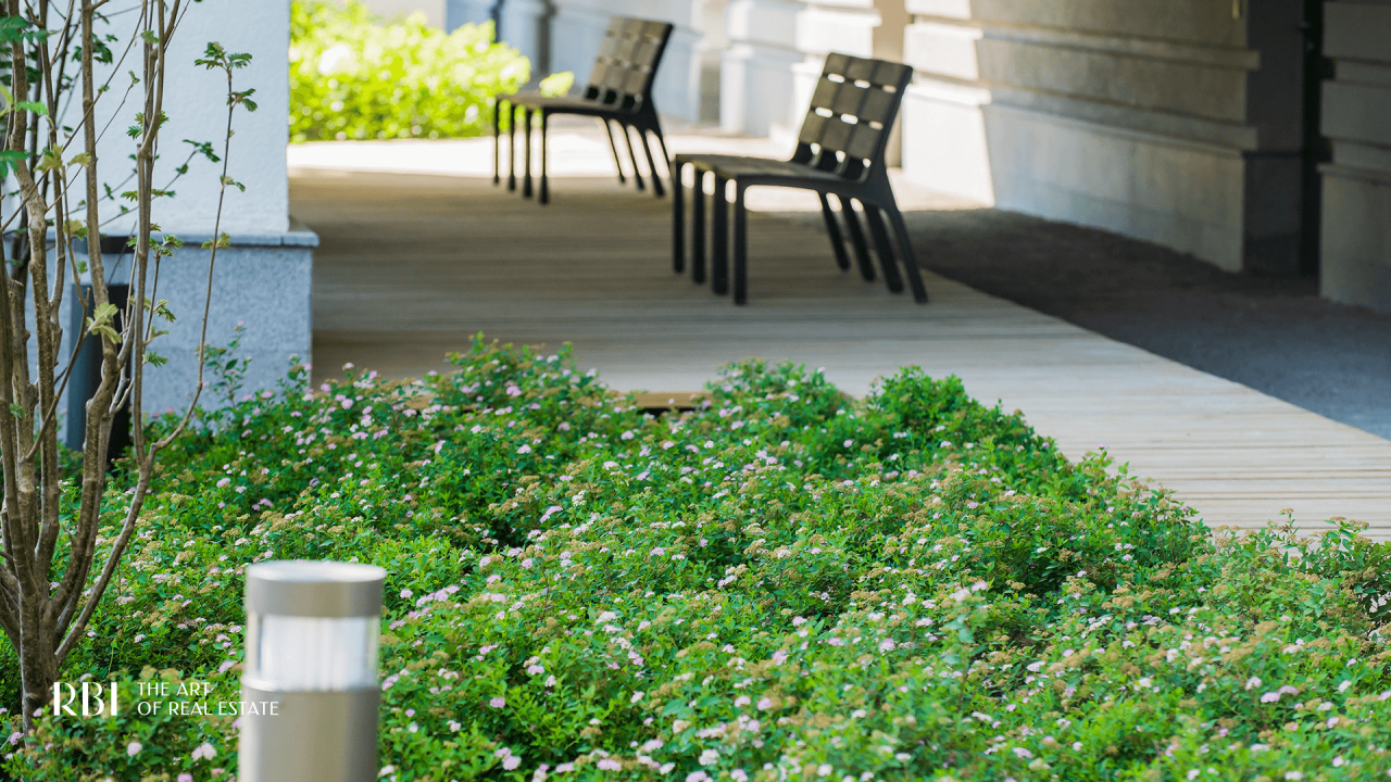 Всё его пространство максимально наполнено зеленью. Здесь можно прогуляться по стильным деревянным настилам или живописной брусчатке. Декоративная подсветка в вечернее время добавит романтики и особой прелести вашим прогулкам. А свободный WI-FI обеспечит комфорт.